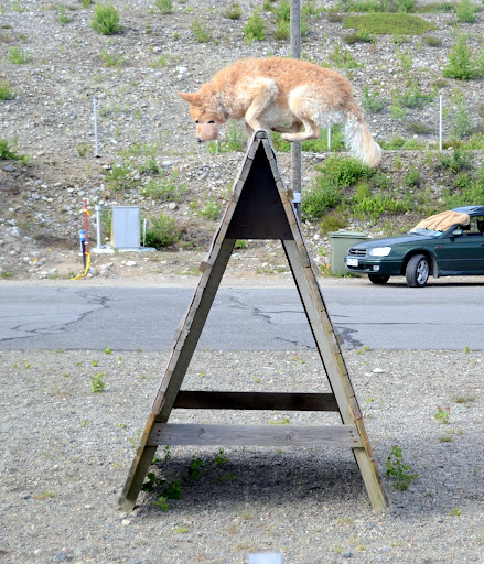 Urholle omatekemä tiepohjajälki, alle 100m. Loppupuollella saman ikäinen harha. Nakkeja joka 3. askeleelle. Ihan pihalla alussa, sitten alkoi bongailla nakkeja (joissa tosin muurahaisia) ja pääsi jyvälle. Söi yhteensä ehkä 3 nakinpalaa, mutta ei haittaa kun kuitenkin niiden avulla keksi lopulta homman idean. Lopussa varsin hyvä 20m pätkä, muuten huteraa. Harhan merkkasi ja olisi muutenkin mielinyt metsän puolelle kun sieltä tuli toisen jäljentekijän hajuja.