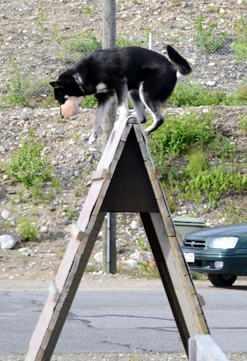 Oililla pk-liikkeet, pl. seuraamiskaavio ja A-estettä ilman kapulaa. Reipasta menoa kaikkiaan. Ja vitsi se osaa tehdä hienon hyppynoudon! Varsinkin jos vertaa mutiaiseen... A-este otettiin edelleen avustajan kanssa ja nyt lyhyemmällä matkalla -> oli paremmat kiipeilyt. Täytynee ottaa sitä jatkossa myös lelun kanssa.